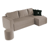 Sezutul si extensia coltarului sunt pe relaxa (arcuri elicoidale și poliuretan).  Bratele rotunjite confera pe langa un aspect deosebit si o sustinere placuta. Lada incorporata este ideala pentru depozitarea lenjeriei, a pernelor sau a paturii, pentru a pastra la indemana toate articolele frecvent utilizate. Scheletul este rezistent realizat pe structura solida.